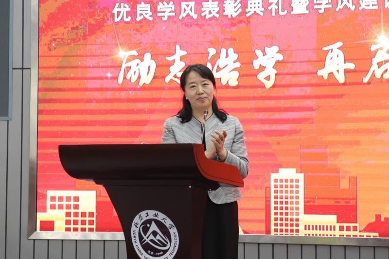 校党委副书记田红芳对获得表彰的集体与个人表示了祝贺,并对学院开展的“浩学”系列活动、“专教特色建设”等学风建设活动表示肯定。她指出,“校风、教风、学风”是大学最宝贵的精神财富,希望广大师生共同努力,争做学校创建优秀大学文化、优良教风学风的先锋队、排头兵,为把学校早日建设成为高水平教学研究型大学共同奋斗。