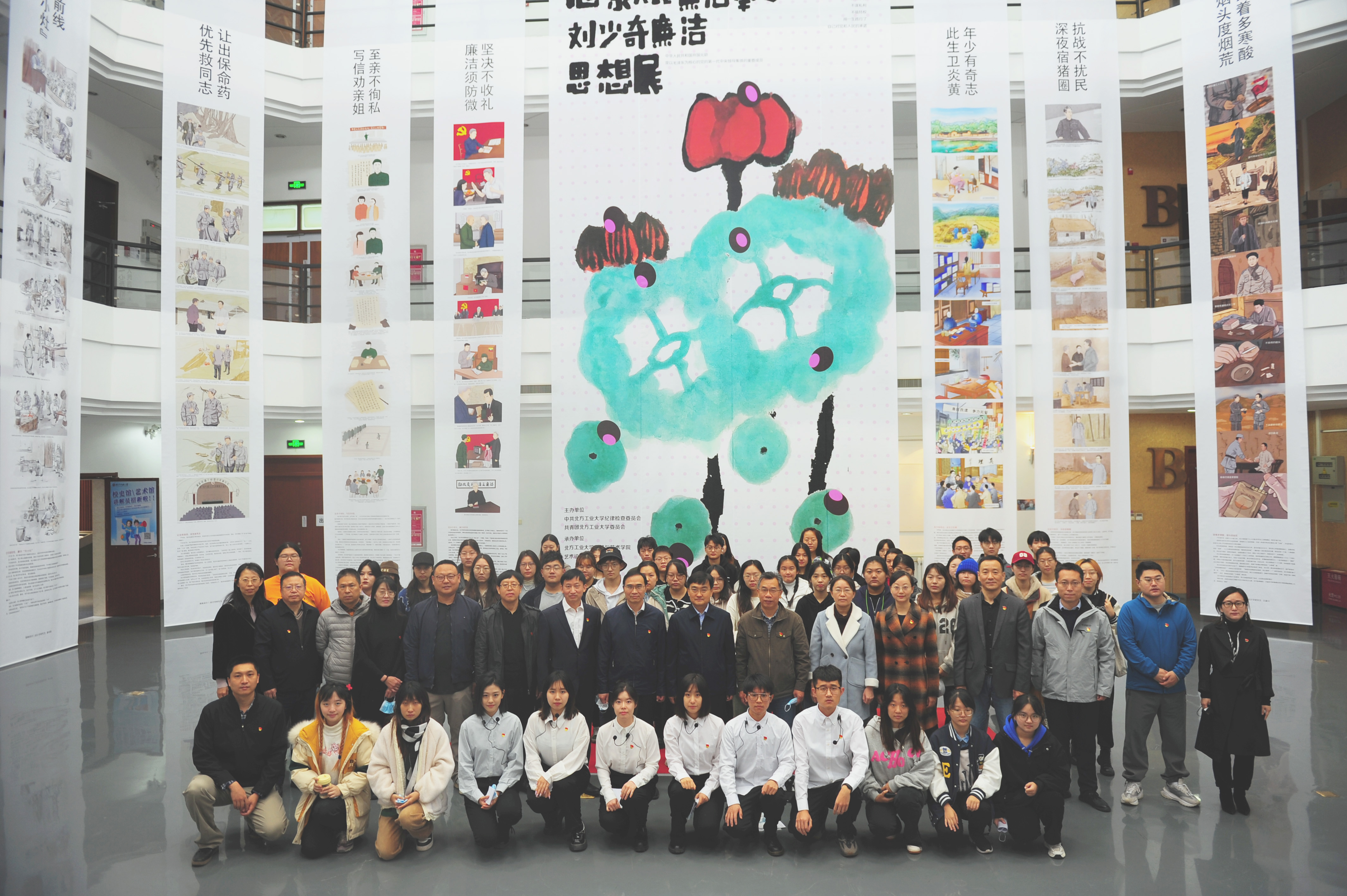 本次展览以习近平总书记在纪念刘少奇同志诞辰120周年座谈会上的重要讲话为指导,由艺术设计系教工党支部负责策划并编辑创作文案,精选刘少奇同志廉洁故事19 篇,设计学研究生党支部党员手绘插画近200 幅,视传20-1、20-2班学生创作设计海报30幅,集中展现了刘少奇同志“心系人民、廉洁奉公”廉洁思想和感人事迹。“伟人廉洁思想展”是建艺学院党委落实立德树人根本任务,充分发挥专业学科优势,将党建与教育教学有机融合,加强课程思政建设的生动实践,至今已经连续举办七届,充分发挥了廉洁文化启智润心的教育功效,已经成为我校廉洁文化建设重要品牌活动。