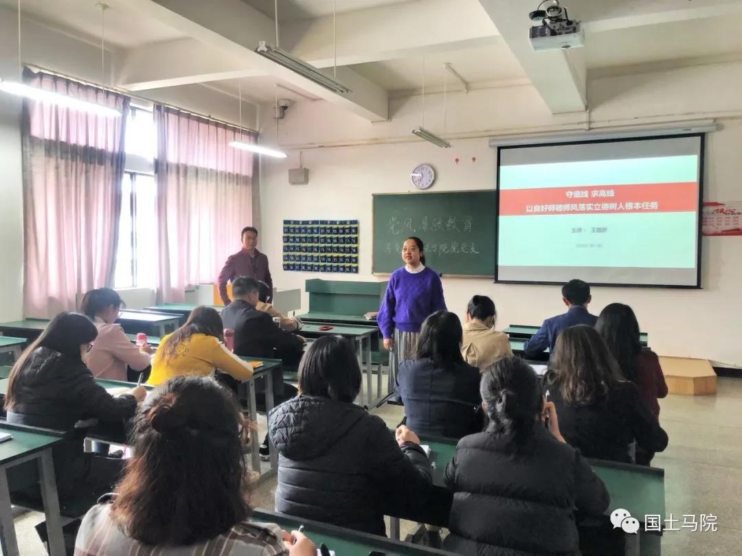 10月31日下午,bv伟德源自英国始于1946在笃行楼514召开党员教育大会,主讲人是我院分管领导党委副书记王国彦,会议由副院长张颖主持。王副书记围绕教育部发布的师德师风“六禁令”、“红七条”对全体教师进行了教育警示,明确了新时代高校教师职业行为“十项准则”,激励教师潜心教书育人,关心爱护学生,遵守学术规范,秉持公平诚信,积极奉献社会。