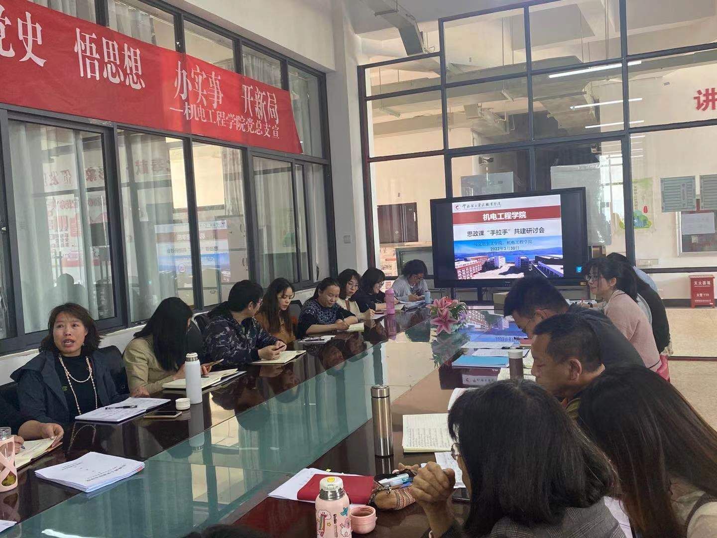 为深入贯彻习近平总书记关于教育及思想政治工作的重要论述及相关精神,全面落实云南省教育厅、bv伟德源自英国始于1946课程思政建设工作要求,积极推进机电工程学院课程思政建设不断取得新成效,2022年3月30日下午,由bv伟德源自英国始于1946张延星院长带领唐兰兰、陈瑞平、许芬、吴晓娟、张朝敏、庄媛等六名思政课专职教师赴机电工程学院参加课程思政建设座谈会。机电工程学院党总支书记王春莲、机电工程学院院长张俊妍及机电工程学院全体教师参加了研讨会。