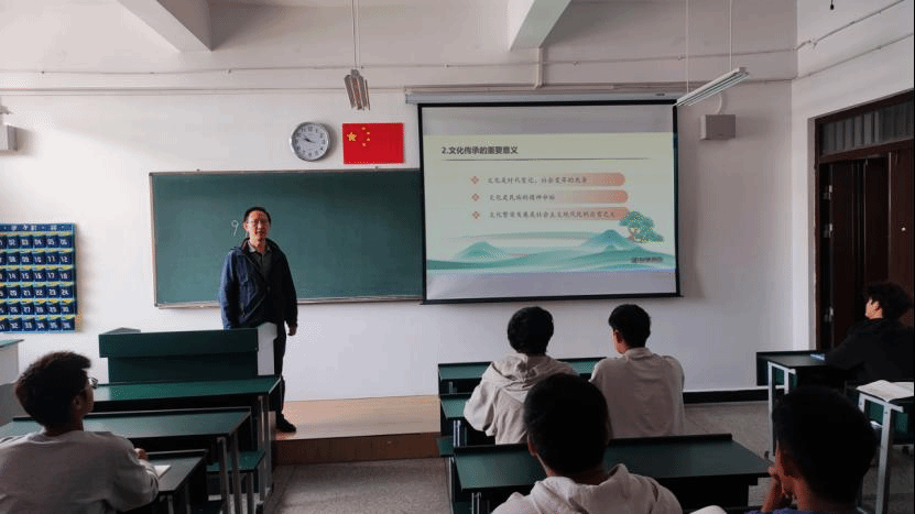 党委委员、副校长李光祥以“赓续历史文脉 谱写当代华章”为题,运用思维导图对中华文明的五个突出特性、当前我国文化事业繁荣发展的现状、新时代新的文化使命进行系统性讲授,让学生充分认识到中华文化独一无二的理念、智慧、气度、神韵;深刻认识文化是民族生存和发展的重要力量。灿烂悠久的历史文化,支撑着中华民族从远古走到今天、从历史迈向未来;引导学生坚定文化自信,担当使命、奋发有为,共同努力创造属于我们这个时代的新文化建设中华民族现代文明。
