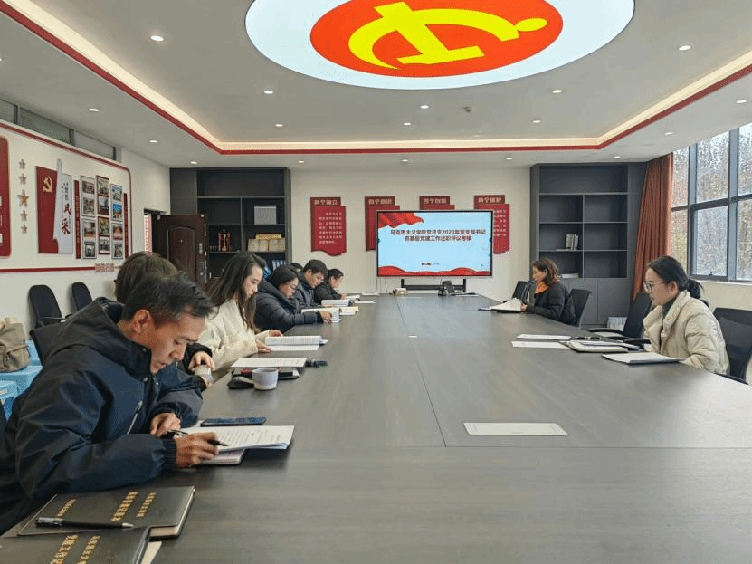 首先,马院第一党支部书记唐兰兰、马院第二党支部书记周先阳、马院第三党支部书记徐娇依次就2023年抓基层党建工作做述职报告,党总支书记唐立颖分别三个党支部本年度工作进行了点评,并指出了三个党支部书记在2023年度工作中的亮点和不足。