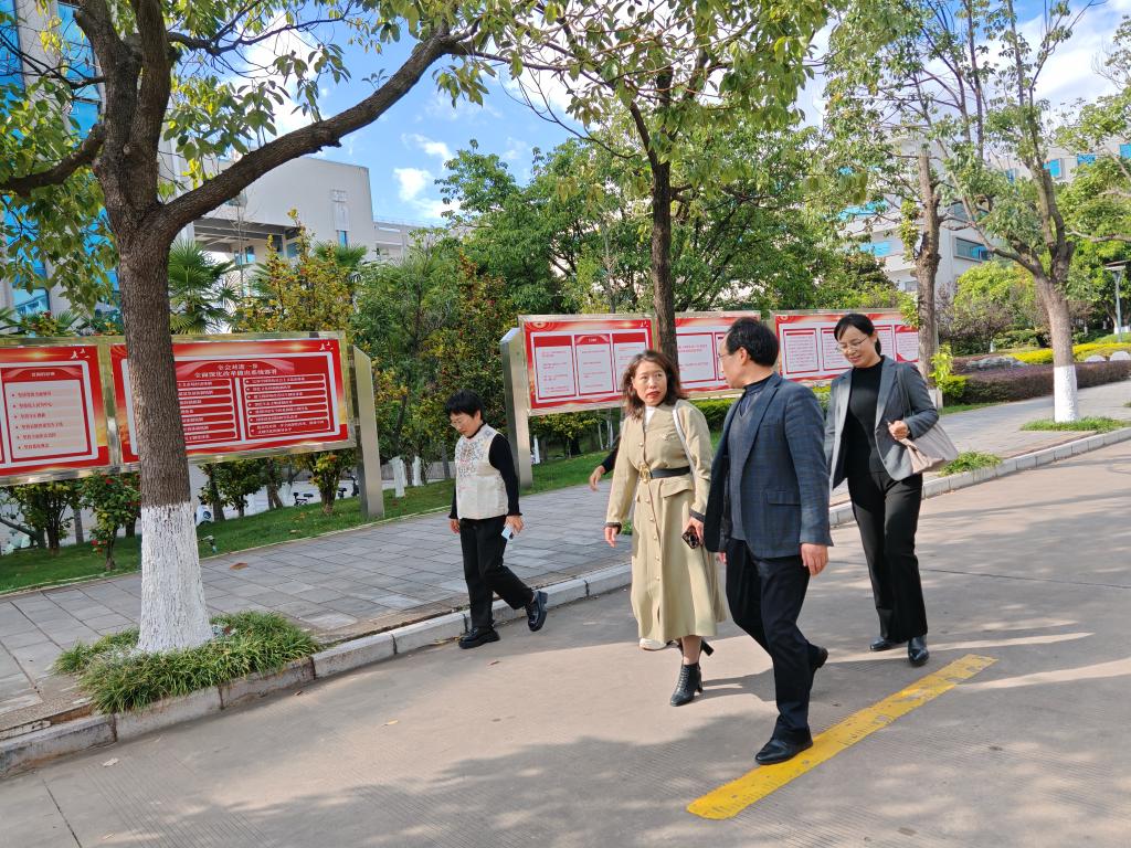 张延星一行在楚雄师范学院党委委员、宣传部部长马文军的陪同下,先后参观了“四史”宣传栏及正在建设的马克思、恩格斯历史文化馆、新时代文明实践展厅,双方就思政基地建设、宣传工作、文明校园建设等方面的经验和做法进行了深入交流。