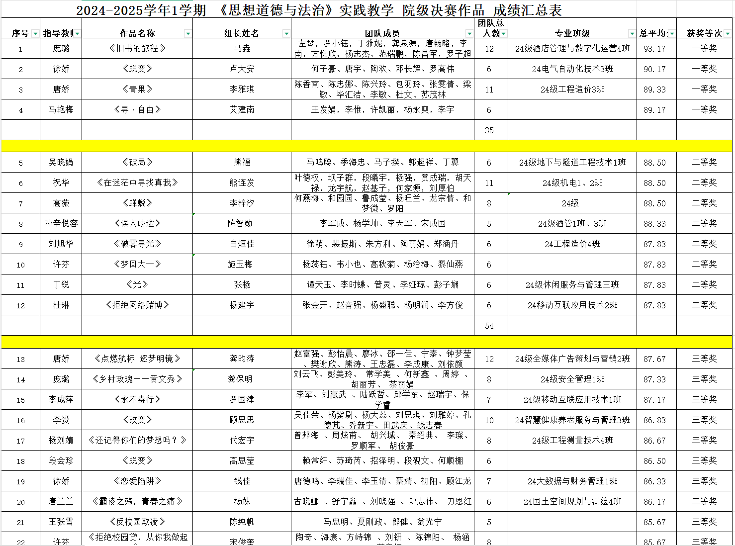 附件:2024-2025学年第1学期 《思想道德与法治》实践教学“我心中的思政课”微电影决赛作品获奖名单
