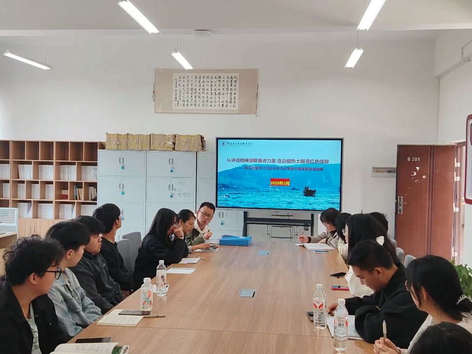 活动伊始,全体成员集中观看了习近平总书记考察云南的新闻报道,深入了解习近平总书记对云南发展提出的新要求,对云南在乡村振兴、民族团结、生态文明方面做出的重要指示精神。随后,5位同学结合专业实践从“筑牢西南生态安全屏障”“自觉担当新时代文化使命”“加快发展高原特色农业”“让人民的生活幸福安康、和和美美”“不断推进中华民族共同体建设”等方面进行了主题发言。