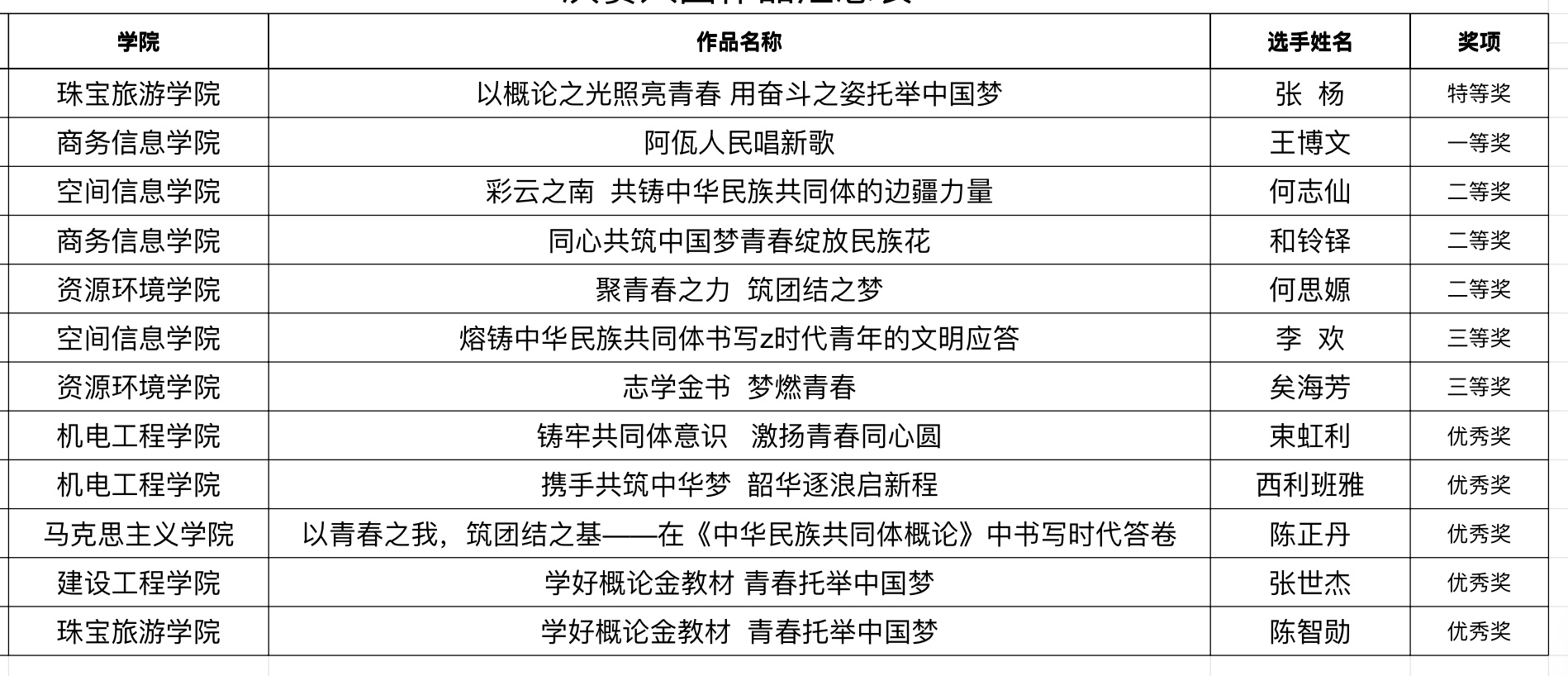 获奖名单
