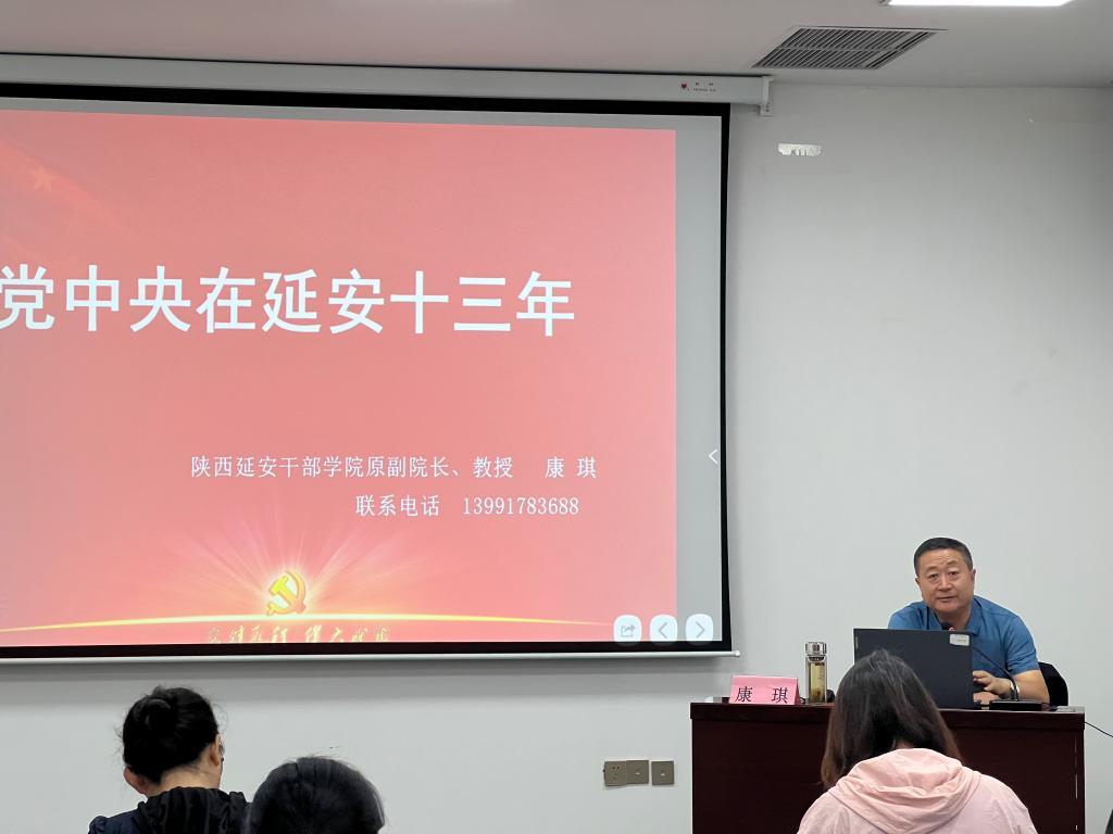 开班仪式后,延安干部学院原副院长、康琪教授以《中共中央在延安十三年》为题进行授课。康琪教授用高度精炼的语言总结了党中央在延安13年取得的辉煌功绩,并就整风运动、大生产运动、六届六中全会、中共七大等重要环节展开详细解说,真实再现了中国共产党由弱变强、转败为胜,突围重重困境取得辉煌胜利,并由延安开始走出中国、走向世界的历程,生动而朴实的语言赢得全场参会人员阵阵掌声。最后,康琪教授结合党中央在延安13年的基本经验,就新时代基层党员干部如何践行延安精神提出建议,强调在新的时代,基层党员干部需要更加注重民生问题,牢记全心全意为人民服务的根本宗旨,把以人为本的改革发展理念真正落到实处。